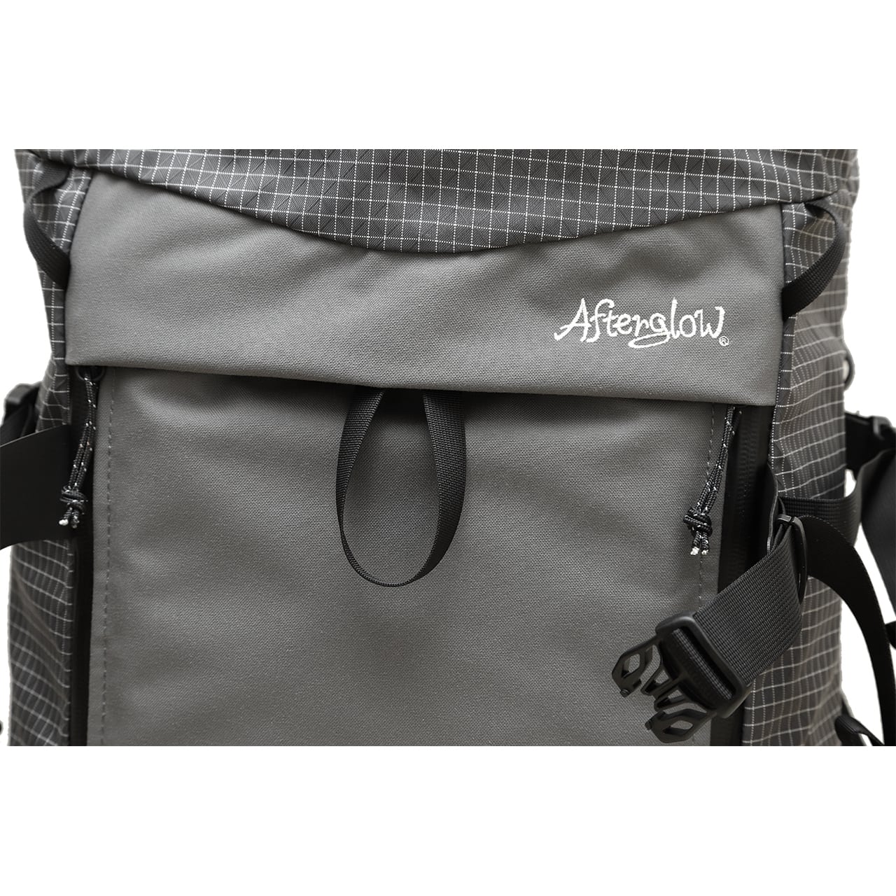 上部の大型ポケットは、良く出し入れするような行動食やウィンドシェル、クトー、クライミングスキンを詰め込めるシンプルな構造。