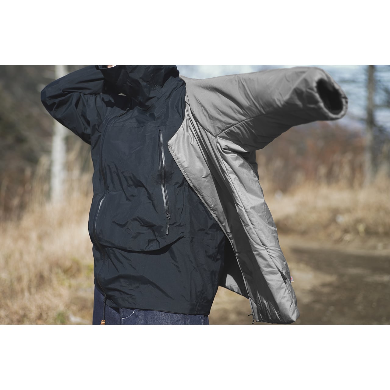バックカントリーや登山、春や秋の渓流釣りなど様々な場面で、ちょっと休憩する時にサッと羽織れて、身体が冷えるのを防いでくれます。